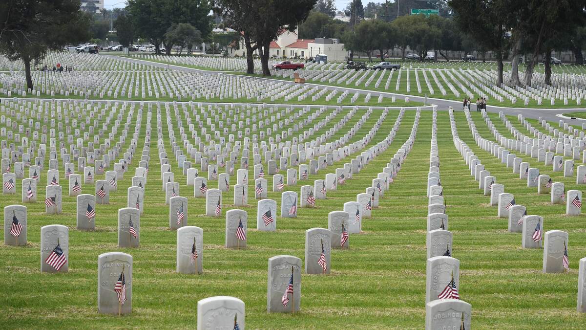 Yet this year the Department of Veteran's Affairs has prohibited public events at the sites because of COVID-19. The Boy Scouts and other groups have been barred from carrying out the mass flag placements.