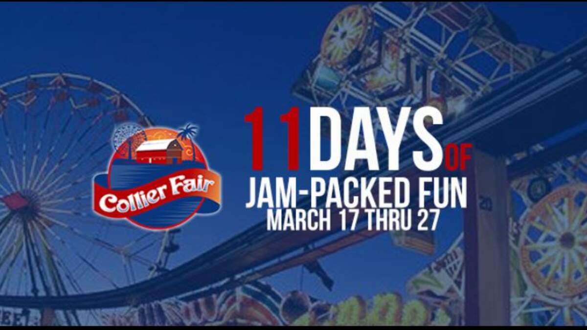 The 46th Annual Collier Fair returns March 17 thru 27! 11 Days of JAM-PACKED FUN Rides, Games, & Fun Shows (always FREE parking). Make Time, for a Great Time, at the Collier Fair.